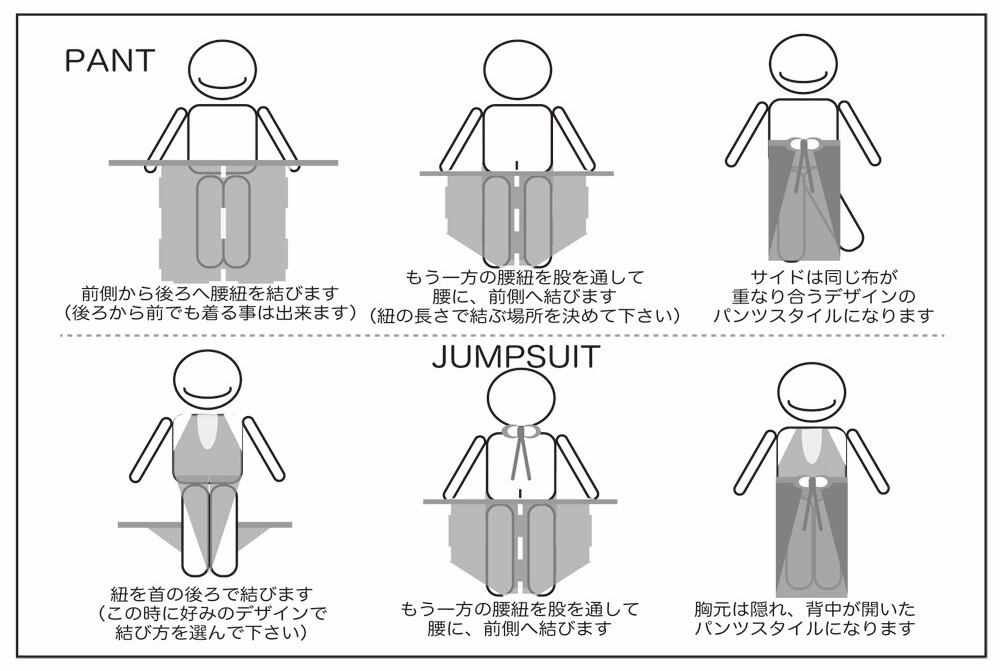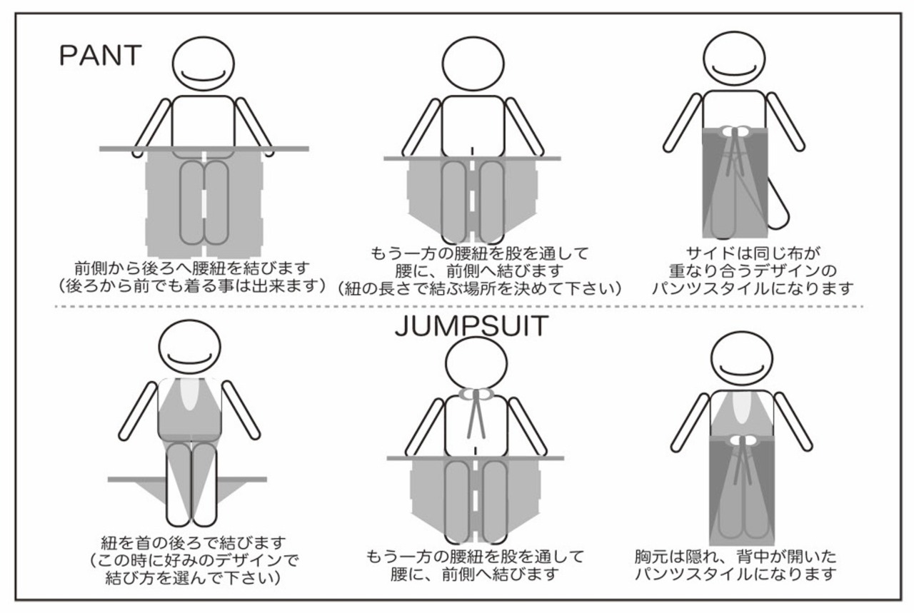 パンツスタイル、オールインワンスタイルになり、オールインワンスタイルの